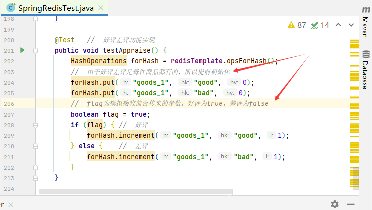 flag为模拟接收前台传来的参数,好评为true,差评为false。