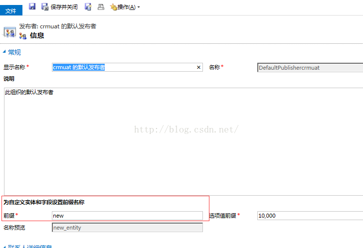 上述是通过自建解决方案和发布者的基础上做的,这样可以不改变原有的系统前缀,当然也可以修改组织的默认发布者中的前缀来修改,具体如下图,这样的好处是不用打开解决方案来操作实体等。