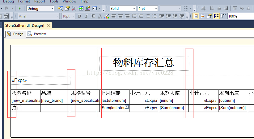 该问题的源头在于上图中我标注的3个区域,打开编辑器查看报表如果3个区域各自对应的左右边框没有和表的某一列对齐就会出现表1中的问题,所以要解决这个问题只需将3个区域各自对应的边框和表格的某一列对齐即可。