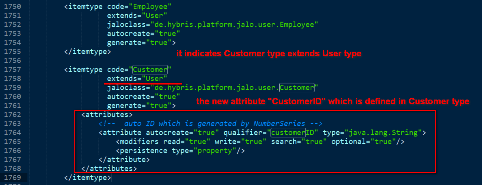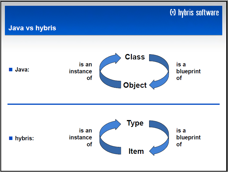Netweaver里所有global可用的data type定义在DDIC里。Hybris也有类似ABAP DDIC的概念,称为type system, 类型定义存在于海量的xml里。区别在于DDIC里是纯粹的静态类型定义,而Hybris的type system不仅仅包含类型定义,还包含类型的behavior - 这些behavior由Java实现。