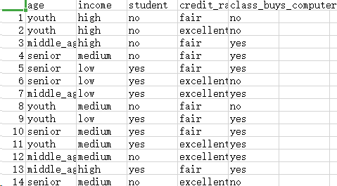 分析:属性 :age income student credit_rating 类:buys_computer