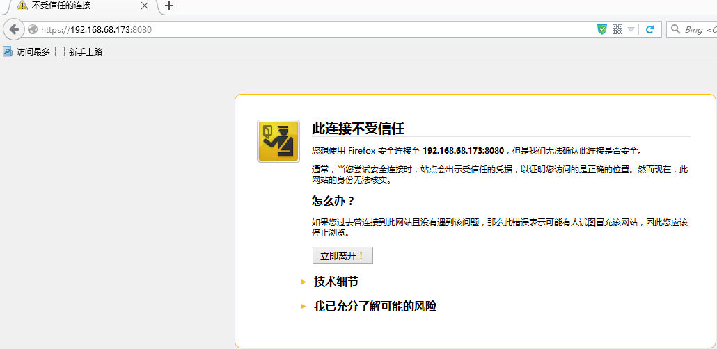 在windows下打开firefox输入https://192.168.68.173:8080回车。