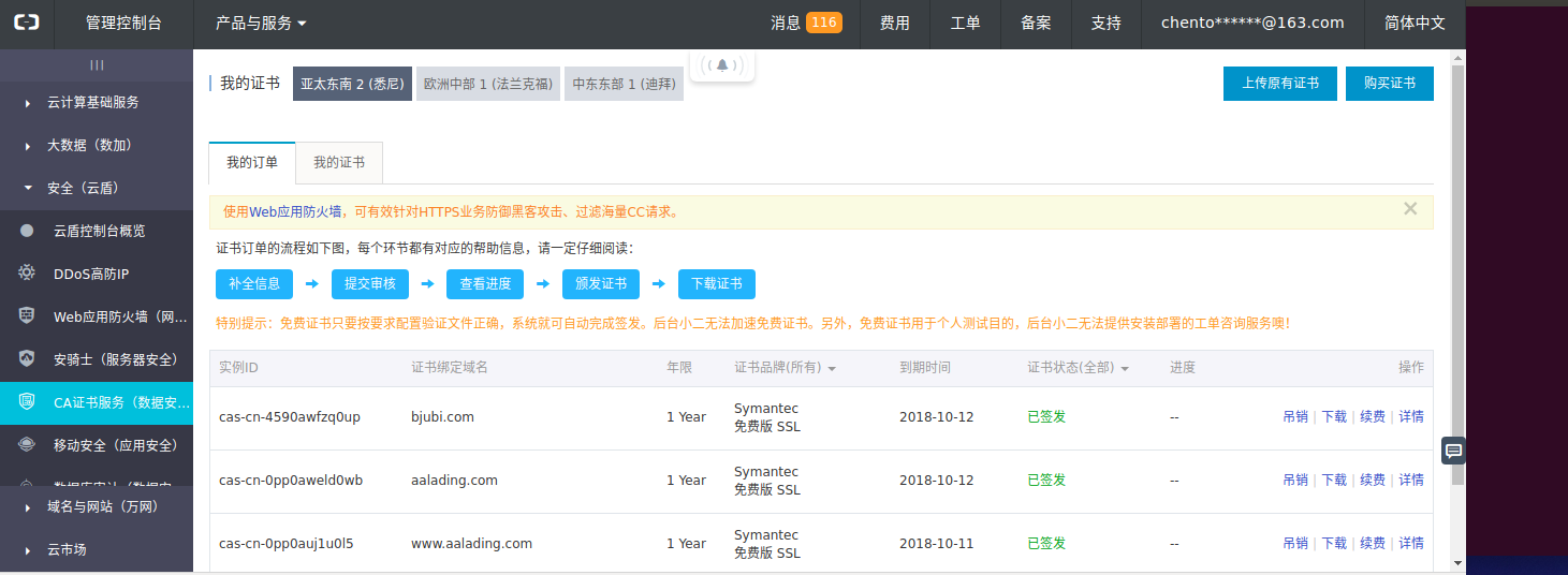 等待几分钟,证书状态变为“已签发”后,证书就申请成功了。