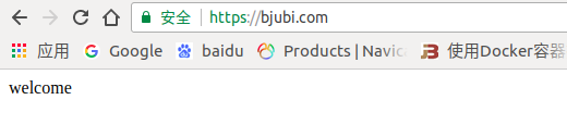 bjubi.com/文件夹下增加一个index.html文件,里面仅仅写了一行<h1>welcome。