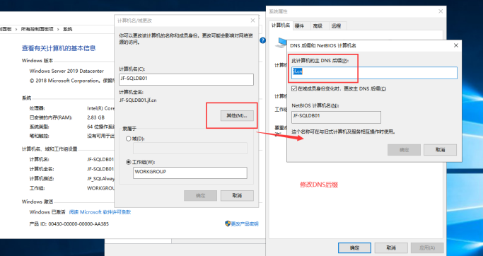 - 修改计算机名添加 dns 后缀名 (所有节点)