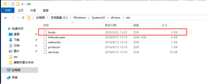 - 打开 路径 C:WindowsSystem32driversetc 下 的hosts 文件配置相关映射 (所有节点+测试机)