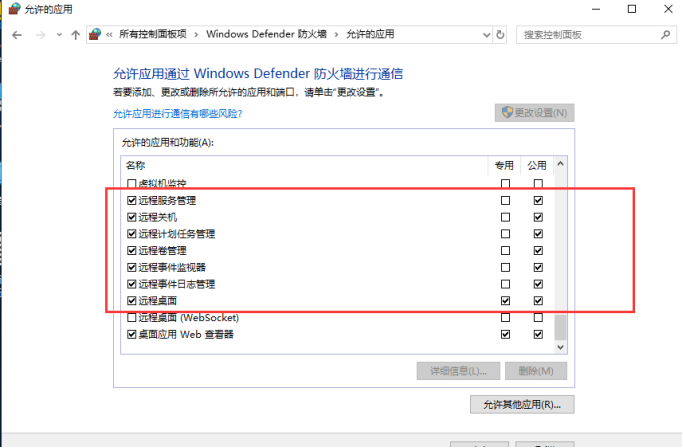 - 打开防火墙设置允许通过的应用和功能(所有节点)