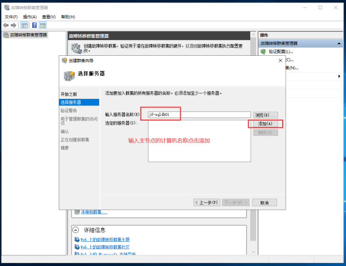 ,请查看是否所有节点都正常,且要加的节点上连上 群集管理器