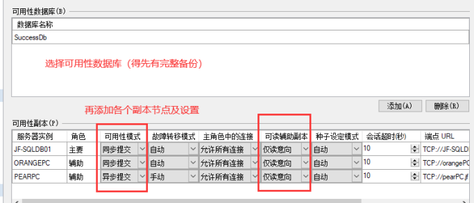 MODIFY REPLICA ON N'ORANGEPC' WITH (PRIMARY_ROLE(READ_ONLY_ROUTING_LIST = ((N'PEARPC',N'JF-SQLDB01'),N'ORANGEPC')))