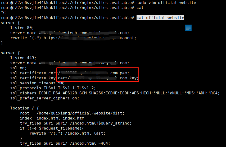 2. 然后切换到 sites-available 目录下,找到对应的需要修改证书的文件夹
