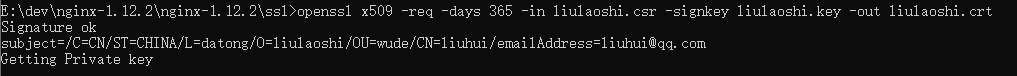 openssl x509 -req -days 365 -in liulaoshi.csr -signkey liulaoshi.key -out liulaoshi.crt