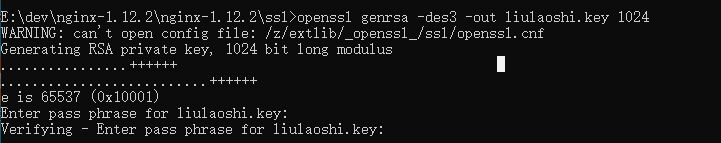 openssl genrsa -des3 -out liulaoshi.key 1024 //liulaoshi为自己取的名字