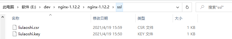 在nginx下创建ssl文件夹,用于存放证书
