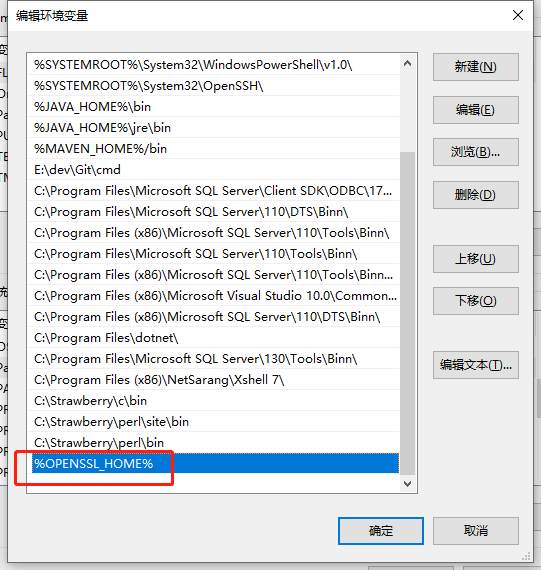 在path变量后需要加入 %OPENSSL_HOME%