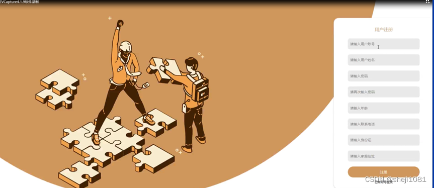 用户注册;在用户注册页面通过填写用户账号、用户姓名、密码、确认密码、年龄、联系电话、身份证、家庭住址等信息完成用户注册操作,如图5-4所示。