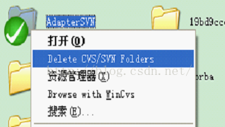 选择想要清除.svn或CVS目录的文件夹,点击右键,发现了什么?是否多了个“Delete CVS/SVN Folders”?!(如下图所示),选择执行!然后你会发现,该目录下以及该目录的子孙目录下的.svn或CVS目录都被删除了!