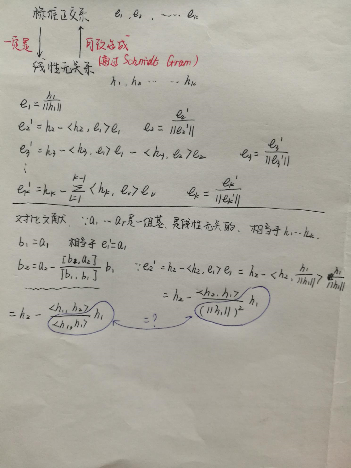上面的的[x,y]表示向量内积,[x,y]=xTy=yTx=[x,y]。施密特正交化公式中的br实际上可写为: