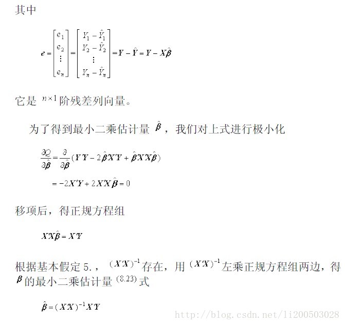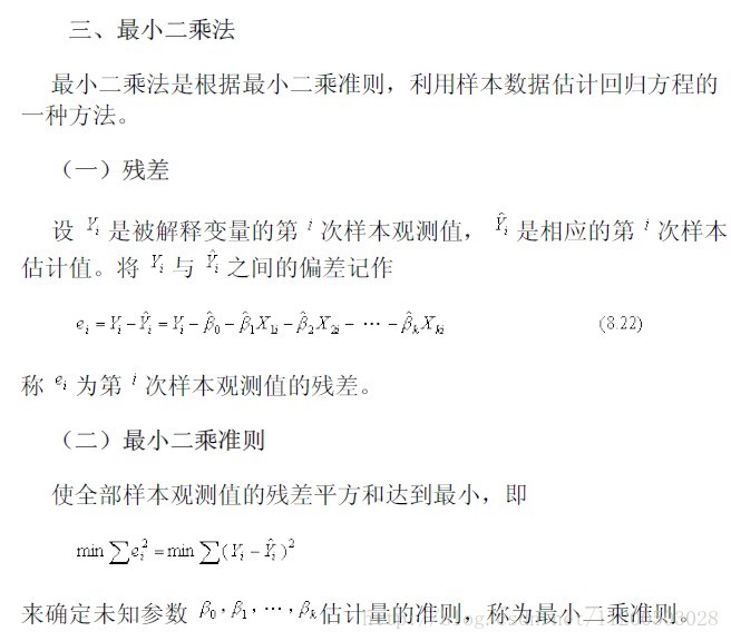 本人开始不理解为什么最小二乘法的求出的估计量就会使残差最小,于是查阅最小二乘法原理如下: