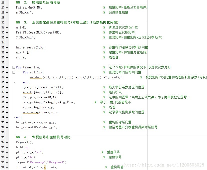 hat_y(pos_array)=aug_y; 重构的谱域向量 最后一次迭代生成的aug_y(m*1维)按照 pos_array排列之后就是想到的恢复信号hat_y
