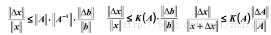 也就是矩阵A的norm乘以它的逆的norm。所以具体的值是多少,就要看你选择的norm是什么了。如果方阵A是奇异的,那么A的condition number就是正无穷大了。实际上,每一个可逆方阵都存在一个condition number。但如果要计算它,我们需要先知道这个方阵的norm(范数)和Machine Epsilon(机器的精度)。为什么要范数?范数就相当于衡量一个矩阵的大小,我们知道矩阵是没有大小的,当上面不是要衡量一个矩阵A或者向量b变化的时候,我们的解x变化的大小吗?所以肯定得要有一个东西来度量矩阵和向量的大小吧?对了,他就是范数,表示矩阵大小或者向量长度。OK,经过比较简单的证明,对于AX=b,我们可以得到以下的结论: