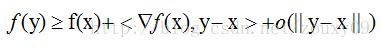 在直观的说明强凸之前,我们先看看普通的凸是怎样的。假设我们让f在x的地方做一阶泰勒近似(一阶泰勒展开忘了吗?f(x)=f(a)+f'(a)(x-a)+o(||x-a||).):