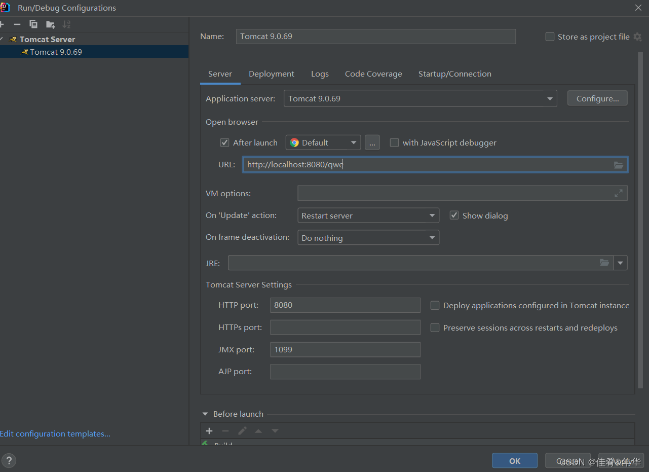 1.点击run,打开run——Edit Configurations窗口,配置Tomcat web项目的url地址,通常url的地址是http://localhost:8080/项目名。