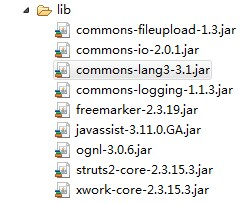 增加commons-lang3-3.1.jar文件到啊WEB-INF/lib目录下,struts2最新的web开发包如下: