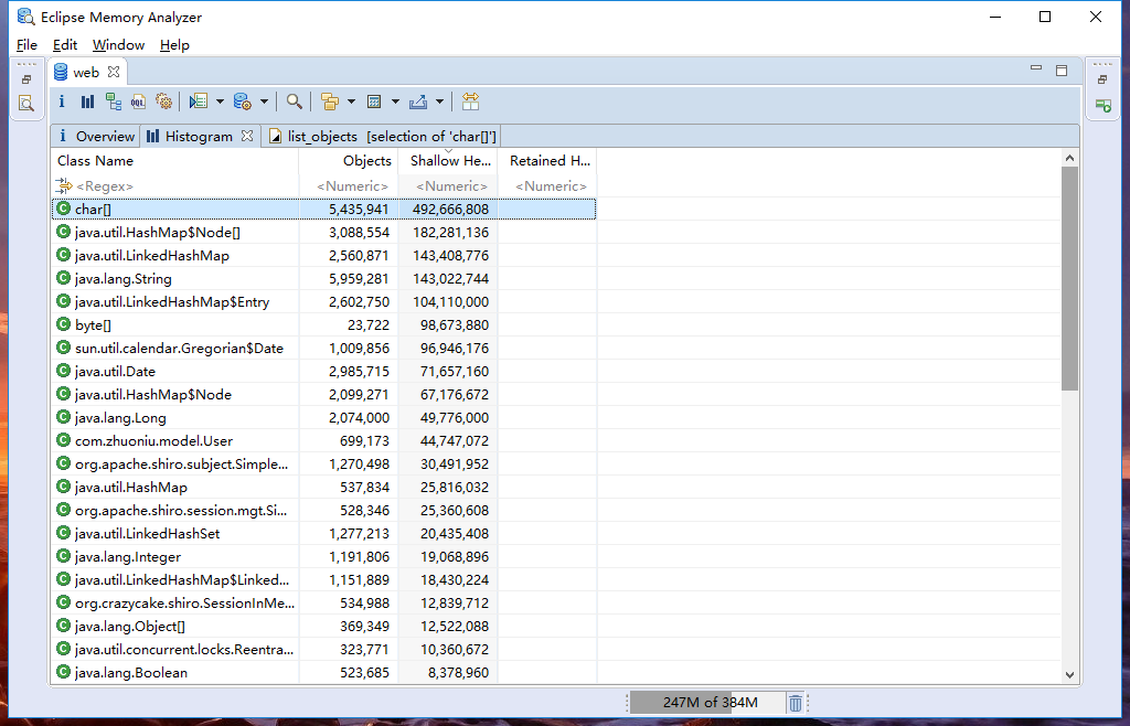 发现有一个user对象占用很多,比较诡异,然后把堆的dump 对象下载下来,在本地用mat 查看