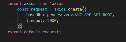 创建的统一的请求接口request,是请求axios的实例对象(一定要先下载(npm install axios)并导入axios)
