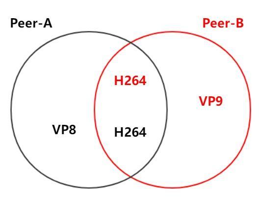 比如:Peer-A端可支持VP8、H264多种编码格式,而Peer-B端支持VP9、H264,要保证二端都正确的编解码,最简单的办法就是取它们的交集H264