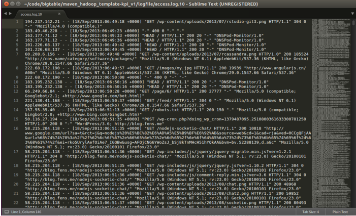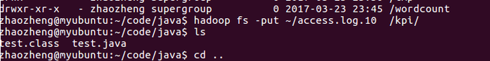 这里的输入是一个目录,可以把输入的文件放到这个目录里面就好。比如这里,我把access.log.10文件放在kpi目录下面。