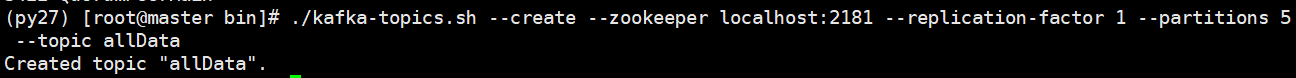./kafka-topics.sh --create --zookeeper localhost:2181 --replication-factor 1 --partitions 5 --topic allData