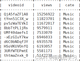 需求⑤:统计每个类别中的视频热度Top10,以music为例