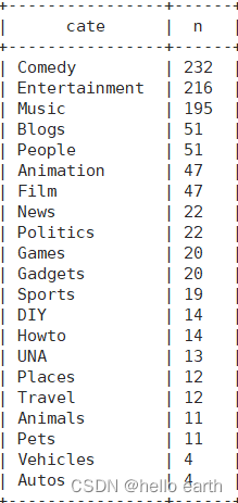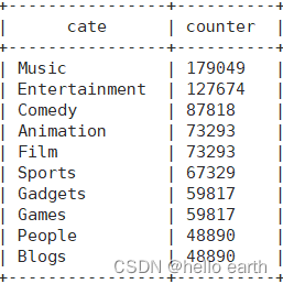 需求②:统计视频类别热度Top10