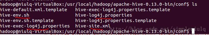 进入$HIVE_HOME/conf目录,原来有四个template文件,执行命令生成正式配置文件: