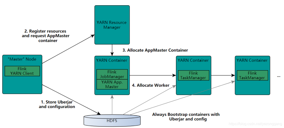 Flink支持增量迭代,具有对迭代自行优化的功能,因此在on yarn上提交的任务性能略好于 Spark,Flink提供2种方式在yarn上提交任务:启动1个一直运行的 Yarn session(分离模式)和在 Yarn 上运行1个 Flink 任务(客户端模式);