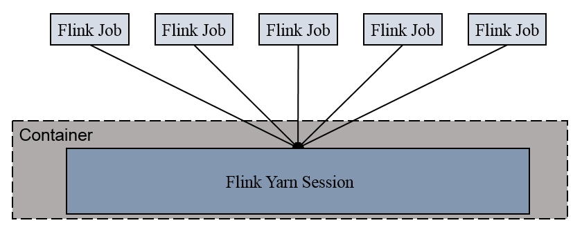 分离模式:通过命令yarn-session.sh的启动方式本质上是在yarn集群上启动一个flink集群,由yarn预先给flink集群分配若干个container,在yarn的界面上只能看到一个Flink session with X TaskManagers的任务,并且只有一个Flink界面,可以从Yarn的Application Master链接进入;