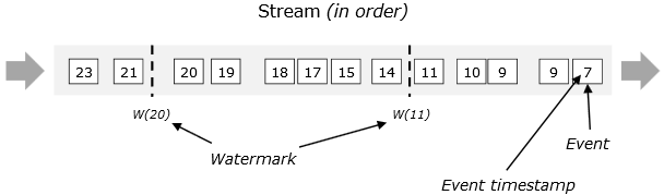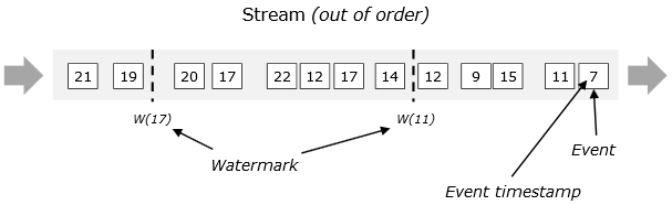 一般情况存在数据的乱序(out-of-order)和延迟(late element),此时水位线机制能表明该时间戳之前到当前水位线时间戳的数据已经全部达到,没有比它(水位线)更早的数据了,并触发计算;
