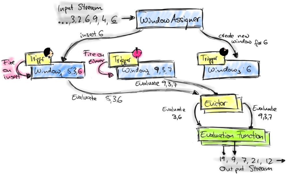 Window Assigner用来决定某个元素被分配到哪个/哪些窗口中去;Trigger触发器决定了一个窗口何时能够被计算或清除,每个窗口都会拥有一个自己的Trigger;