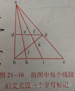 思路:首先给图中每个线段的交点设一个字母标记,不是任何两个字母都构成一条线段,使用穷举法列出所有线段;