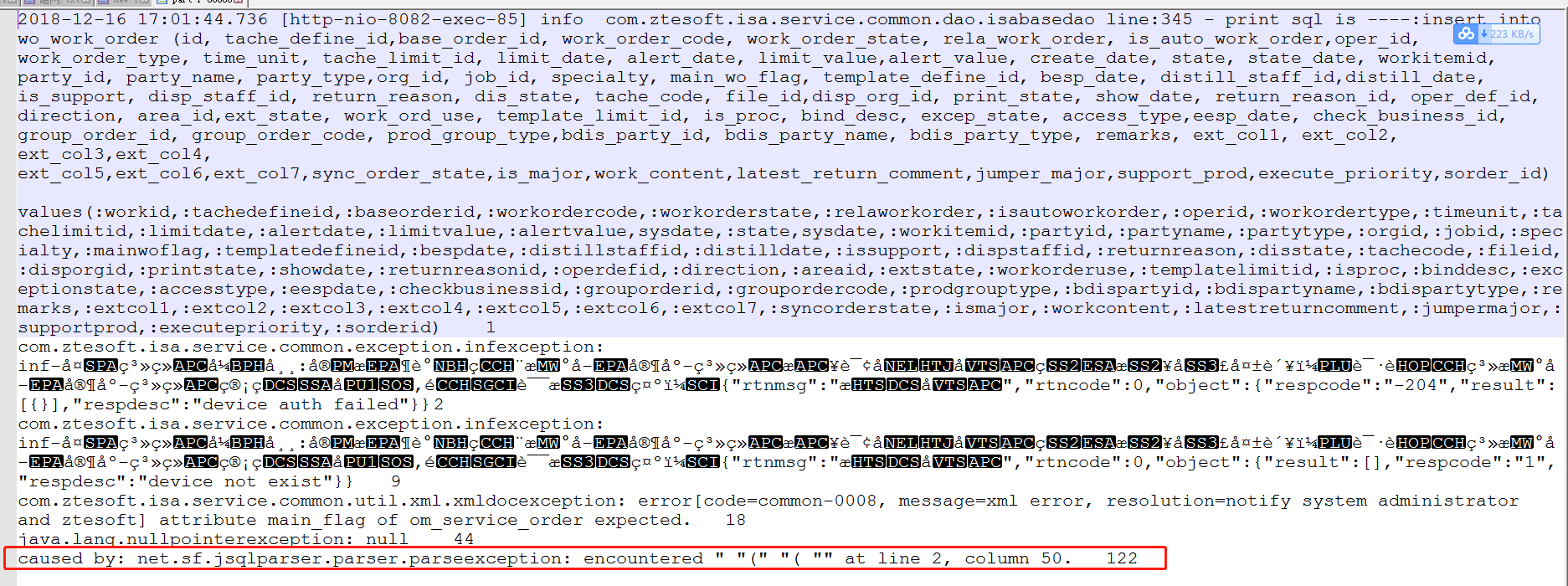 我们发现是这个地方报错非常频繁,可以从这个入手,看看是那些sql导致的,当然这个程序还有待改进,这里只能找到发生最频繁的异常,并不能分析出到底是哪个地方(当然跟记录日志的格式也有关系,这个太乱)。。。。