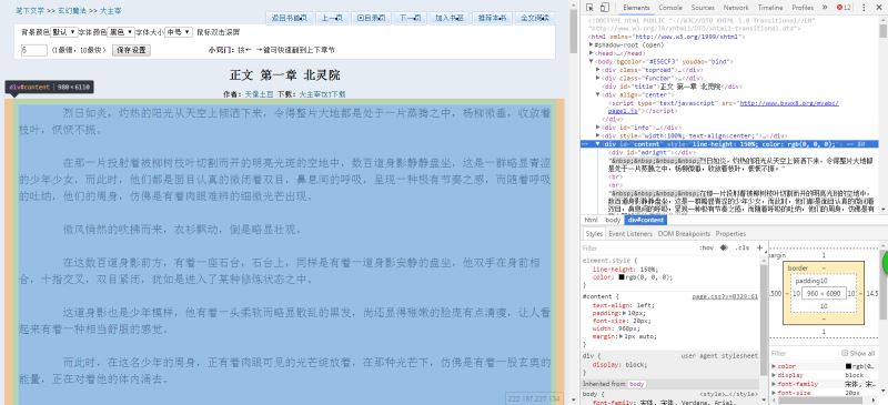 - 文章的标题。<div id="title">正文 第一章 北灵院</div>