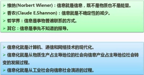 | 克劳德香农 | 信息化奠基人 | 信息就是用来消除不确定的东西。信息就是不确定性的减少。信息是系统有序程度的度量。 |
