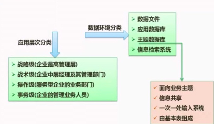 数据环境分类:文件系统,应用数据库,主题数据库,信息检索系统。
