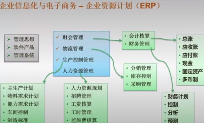 | 6 | 企业资源计划 | ERP。对物质流,资金流,信息流这三种资源进行全面集成管理的管理信息系统。ERP建立在信息技术的基础上,利用现代企业的先进管理思想,全面集成企业所有资源信息。ERP不仅仅是信息系统,还是一种管理理论和管理思想。 |