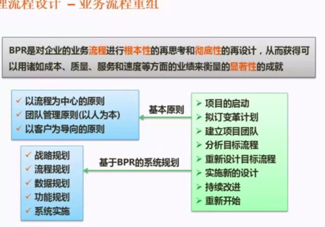 业务流程重组:推翻原来所有的东西,再思考再设计。因为变化大,所以业务流程重组风险也大。在应用时要以流程为中心。以人为本(团队管理原则),以客户为导向。业务流程管理走的是逐步革新的过程。它在整个过程中通过不断的革新来达到目标。