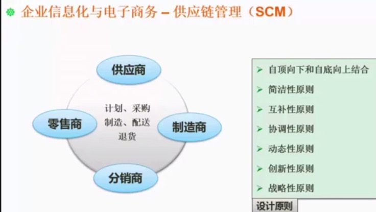 | 4 | 供应链管理 | SCM。从原材料开始一直到最终客户,它凭借一个设计好的信息流,物流,资金流来完成。现代意义的供应链是利用计算机网络技术,全面规划供应链中的商流,物流,信息流(需求信息流和供应信息流),资金流等,并进行计划,组织,协调和控制。 |