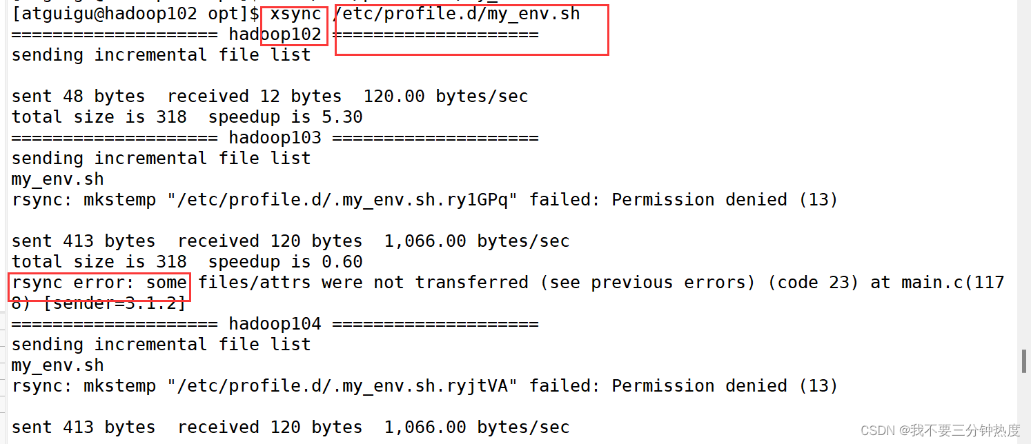 以上就是危机花生最近收集整理的关于xsync脚本同步文件出现rsync error错误的全部内容,更多相关xsync脚本同步文件出现rsync内容请搜索靠谱客的其他文章。