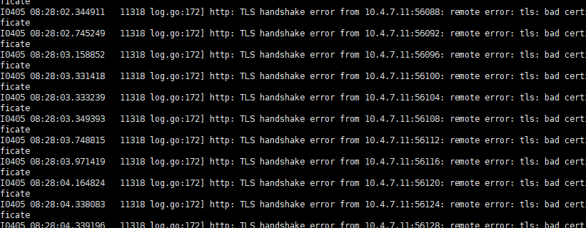 以上就是激情山水最近收集整理的关于apiserver报http: TLS handshake error from 10.4.7.11:56612: remote error: tls: bad certificate的全部内容,更多相关apiserver报http:内容请搜索靠谱客的其他文章。