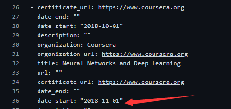 accomplishments里的日期不能写成"2018-11"的形式